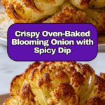 This Amazing Blooming Onion recipe offers a deliciously crispy and golden baked onion snack that’s perfect for sharing. Coated with a flavorful seasoned flour mixture and baked to perfection, this blooming onion is a healthier alternative to the classic fried version, paired with a tangy and spicy homemade dipping sauce.