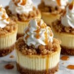 Apple Crisp Mini Cheesecakes combine the creamy richness of cheesecake with the comforting flavors of apple crisp. These individual treats are perfect for sharing or enjoying as a personal dessert, topped with a drizzle of caramel sauce for extra indulgence.
