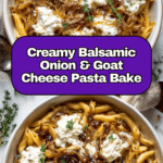 Keywords: balsamic onion pasta bake, goat cheese pasta bake, baked pasta recipe, vegetarian pasta bake, creamy pasta casserole