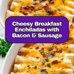Start your morning with these hearty and flavorful breakfast enchiladas that combine fluffy scrambled eggs, savory sausage, crispy bacon, and a creamy salsa cheese sauce. Perfectly baked and topped with fresh cilantro, they make a delightful and satisfying breakfast or brunch dish.