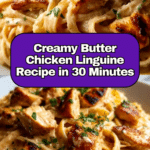 Butter Chicken Linguine is a rich and comforting dish that brings together creamy, flavorful chicken with perfectly cooked pasta. This recipe combines tender chicken breasts with a luscious butter and garlic sauce, finished with Parmesan cheese for a satisfying meal that’s easy to prepare any night of the week.