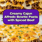 Cajun Cream Cheese Alfredo Bowties with Spiced Ground Beef is a flavorful twist on classic pasta dishes. This creamy, spicy meal combines tender bowtie pasta with a rich Alfredo sauce and zesty Cajun-seasoned beef for a satisfying dinner that’s easy to prepare.
