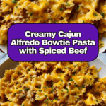 Cajun Cream Cheese Alfredo Bowties with Spiced Ground Beef is a flavorful twist on classic Alfredo pasta. Combining creamy sauce with bold Cajun spices and savory ground beef, this dish is perfect for a comforting weeknight dinner that feels special.