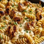 This Cheesy Cajun Garlic Chicken Rotini Skillet is the perfect cozy meal, featuring tender bite-sized chicken chunks seasoned with vibrant Cajun spices, tossed with al dente rotini pasta, and smothered in a rich, creamy three-cheese sauce. Easy to prepare and packed with bold flavors, this one-pan dish is ideal for comforting weeknight dinners.