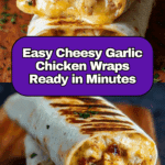 Cheesy Garlic Chicken Wraps are a deliciously satisfying meal featuring tender, seasoned chicken breast cooked to golden perfection, smothered in creamy garlic sauce, and layered with a blend of melted cheddar and mozzarella cheeses, all wrapped in warm, soft flour tortillas. Perfect for a quick lunch or dinner, these wraps combine bold flavors and gooey cheese for an easy yet indulgent dish.