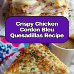 Chicken Cordon Bleu Quesadillas combine the classic flavors of chicken cordon bleu with a crispy, cheesy quesadilla. Tender grilled chicken, savory ham, Swiss or Provolone cheese, and a rich Parmesan Dijon sauce are layered between two flour tortillas, then skillet-cooked until golden and melty. This easy-to-make dish offers a delicious fusion of creamy, crispy, and savory tastes perfect for a comforting lunch or dinner.