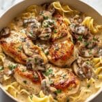 Keywords: Chicken Mushroom Stroganoff, creamy chicken stroganoff, easy chicken dinner, mushroom stroganoff recipe, weeknight chicken recipes