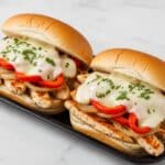 - Step 5: Spread rolls with optional garlic mayo or butter. Using a spatula, scoop each cheesy chicken and vegetable mound into the rolls. Serve hot, and be ready with extra napkins for the deliciously melty drips.