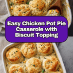 Chicken Pot Pie Casserole is a comforting and easy-to-make dish that combines tender chicken, mixed vegetables, and a creamy sauce topped with flaky biscuits or puff pastry. It’s perfect for busy weeknights or when you crave a classic, hearty meal with minimal effort.