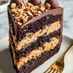 This Chocolate Peanut Butter Cake is a rich and moist dessert combining deep cocoa flavors with creamy peanut butter frosting. Baked to perfection and layered with smooth peanut butter frosting, garnished with mini chocolate chips, chopped peanuts, and crushed peanut butter cups for an extra indulgent treat perfect for any celebration or sweet craving.