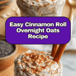 A delicious and easy-to-make Cinnamon Roll Overnight Oats recipe that combines oats, chia seeds, Greek yogurt, and a touch of cinnamon and vanilla glaze for a creamy, sweet, and nutritious breakfast solution. Prepared the night before, it offers a convenient, flavorful start to your day that tastes like your favorite cinnamon roll without the baking.