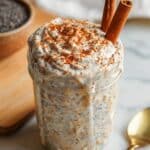 A delicious and easy-to-make Cinnamon Roll Overnight Oats recipe that combines oats, chia seeds, Greek yogurt, and a touch of cinnamon and vanilla glaze for a creamy, sweet, and nutritious breakfast solution. Prepared the night before, it offers a convenient, flavorful start to your day that tastes like your favorite cinnamon roll without the baking.
