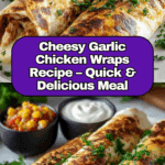 Cozy Cheesy Garlic Chicken Wraps are a warm and satisfying meal featuring tender cooked chicken, creamy cheese, and fragrant garlic all wrapped in a soft tortilla. This easy-to-make recipe combines a rich and flavorful filling with the crispy, grilled exterior of a skillet-cooked wrap, perfect for a quick lunch or dinner.