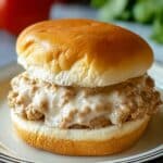 Creamy Chicken Alfredo Sloppy Joes combine the comforting flavors of traditional sloppy joes with a rich, cheesy Alfredo sauce for a delightful twist on a classic sandwich. Ground chicken is sautéed and mixed with creamy Alfredo sauce, mozzarella, and Parmesan cheese, then served on toasted hamburger buns for a comforting and easy meal perfect for any day.