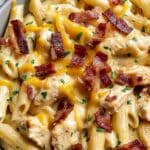 Keywords: Creamy Crack Chicken Pasta, Chicken Pasta, Bacon Pasta, Cheddar Cheese Pasta, Easy Weeknight Dinner, Comfort Food, Ranch Seasoning Pasta