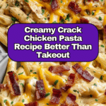 This Creamy Crack Chicken Pasta is a deliciously rich and comforting dish that combines tender chicken, crispy bacon, and a creamy cheddar cheese sauce with ranch seasoning. Perfect for a cozy dinner, it’s quick to prepare and offers a flavorful alternative to takeout.