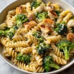 This comforting Rotisserie Chicken Broccoli Pasta combines tender shredded rotisserie chicken with al dente penne pasta and crisp broccoli florets in a rich, creamy sauce made from heavy cream, Parmesan, and mozzarella cheeses. Ready in just 35 minutes, it’s a perfect weeknight dinner that feels indulgent yet uses convenient store-bought ingredients. The sauce is flawlessly smooth and lightly seasoned with Italian herbs, garlic, and a hint of red pepper flakes for warmth. A knob of butter at the end gives it a silky, restaurant-quality finish that will have your family asking for seconds.