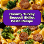 Keywords: Creamy turkey skillet, turkey sausage pasta, broccoli pasta skillet, one-pan dinner, cheesy pasta recipe