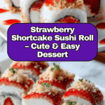 This Creative & Cute Strawberry Shortcake Sushi Roll is a fun twist on a classic dessert. It combines light sponge cake, creamy filling, and fresh strawberries rolled into bite-sized pieces resembling sushi. Perfect for impressing guests or enjoying a playful treat at home.