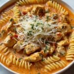 This Crockpot Chicken Parmesan Soup combines the comforting flavors of classic chicken Parmesan in a warm, hearty soup. It’s easy to make and perfect for busy days when you want a delicious, no-fuss meal. Slow-cooked chicken, tomatoes, pasta, and creamy Parmesan come together beautifully in one pot.