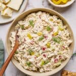 This Easy High Protein Feta Chicken Salad is a flavorful and creamy dish combining shredded chicken with tangy feta, pepperoncini, roasted red peppers, and a blend of fresh herbs and spices. Perfect for a quick lunch or light dinner, it can be enjoyed on its own, in wraps, sandwiches, or as a dip with crackers. High in protein and bursting with Mediterranean-inspired flavors, this chicken salad is both nutritious and versatile.