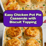 Keywords: chicken pot pie casserole, easy chicken casserole, homemade pot pie, biscuit topping, comfort food, family dinner, creamy chicken casserole