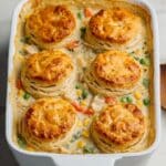 Keywords: chicken pot pie casserole, easy chicken casserole, homemade pot pie, biscuit topping, comfort food, family dinner, creamy chicken casserole
