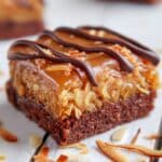 Keywords: Samoa brownies, toasted coconut brownies, caramel brownies, easy dessert, chocolate coconut caramel bars