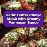 This Garlic Butter Steak with Parmesan Cream Sauce recipe features tender, juicy ribeye steaks cooked to medium-rare perfection in garlic-infused butter, topped with a rich and creamy Parmesan sauce. It’s an elegant yet simple dish that brings restaurant-quality flavors to your dinner table using everyday ingredients and stovetop cooking.