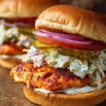 Grilled Buffalo Chicken Sandwiches bring the bold, spicy flavors of classic Buffalo wings into a satisfying handheld meal. The smoky, tender grilled chicken pairs perfectly with a tangy grinder-style slaw and melty cheese on soft brioche buns. This recipe offers a healthier twist without sacrificing any of the iconic taste.