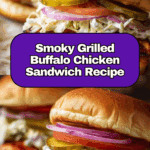 This Grilled Buffalo Chicken Sandwich recipe transforms the classic spicy Buffalo wings flavor into a healthier, smoky, and satisfying sandwich. Featuring marinated and grilled boneless skinless chicken breasts coated in a tangy buffalo sauce, layered with a crisp homemade grinder slaw, sliced tomatoes, and melty cheese on toasted brioche buns, it’s perfect for any occasion—from backyard barbecues to quick weeknight dinners.