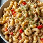This High-Protein Creamy Philly Cheesesteak Mac & Cheese combines the hearty flavors of a classic Philly cheesesteak with the creamy comfort of mac and cheese. Made with lean ground beef, vibrant bell peppers, garlic, and a trio of melty cheeses, this dish serves up a satisfying, protein-packed meal that’s perfect for dinner any night of the week.