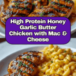 This High Protein Honey Garlic Butter Chicken paired with creamy Mac & Cheese is a comforting meal that combines savory and sweet flavors perfectly. It’s an easy-to-make dish that’s both satisfying and packed with protein, great for a hearty family dinner.