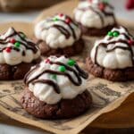 These Hot Cocoa Cookies with Marshmallow Frosting combine rich, Dutch-processed cocoa-infused chocolate cookies with a fluffy, sweet marshmallow creme frosting. Soft, chewy, and indulgently chocolatey with optional mini marshmallows mixed in for extra gooeyness, these festive cookies are perfect for holiday gatherings or cozy winter treats.