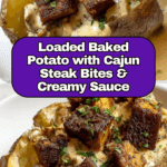 Keywords: loaded baked potato, steak bites, parmesan cream sauce, Cajun steak, easy dinner, comfort food, baked potato recipe