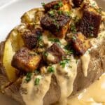 - Assemble and Serve: Spoon the cooked steak bites evenly into each potato and drizzle generously with the warm Parmesan cream sauce. Serve immediately and enjoy this delicious, hearty meal.