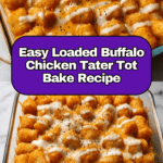This Loaded Buffalo Chicken Tater Tot Bake is a perfect blend of spicy, creamy, and cheesy flavors topped with crispy tater tots. It’s an easy dinner recipe that satisfies comfort food cravings and comes together quickly for busy weeknights.