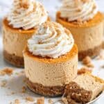 Mini No Bake Pumpkin Cheesecakes are the perfect fall dessert featuring a simple crunchy granola bar crust and a luscious pumpkin-flavored cream cheese filling. These bite-sized cheesecakes require no baking, making them quick and easy to prepare. Chilled until firm, they are topped with whipped cream and a sprinkle of cinnamon for a delightful seasonal treat.