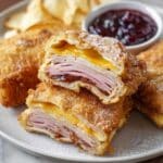 - Serve: Lightly sprinkle the fried sandwiches with confectioners’ sugar. Serve warm with a side of red raspberry preserves and optional honey mustard for dipping.