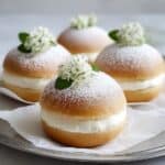 Store the filled cream bombs in an airtight container in the refrigerator for up to 2 days. Reheat gently in a warm oven for a few minutes to restore freshness. It’s best to fill the doughnuts just before serving to prevent the dough from becoming soggy.