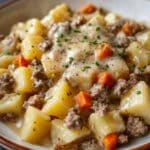 This Easy One-Pan Creamy Meat & Potato Skillet is a quick and comforting meal perfect for busy weeknights. Using simple, affordable ingredients like ground meat, diced potatoes, and a creamy soup base, this dish combines rich flavors with satisfying textures all cooked in one skillet for easy cleanup.