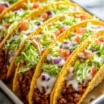 These Oven-Baked Cheesy Tacos are a comforting and flavorful meal featuring seasoned ground beef baked with melted cheese in crispy taco shells. Topped with fresh lettuce, tomatoes, onions, and cilantro, they offer a perfect combination of savory and fresh textures, ideal for a family dinner or casual gathering.