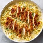 This Parmesan Crusted Chicken with Alfredo is a deliciously crispy baked chicken breast coated in a savory Parmesan and breadcrumb crust, served with a rich and creamy homemade Alfredo sauce. A perfect comforting dinner that’s easy to prepare and sure to impress with its blend of textures and flavors.