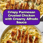 Keywords: Parmesan crusted chicken, Alfredo sauce, baked chicken breast, crispy chicken, creamy sauce, Italian chicken recipe