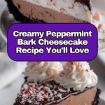 This Peppermint Bark Cheesecake is a festive and creamy dessert perfect for the holiday season. Featuring a rich chocolate cookie crust, smooth peppermint-infused cheesecake layers, and a luscious chocolate ganache middle, it’s topped with whipped cream, crushed peppermint candies, and optional chocolate shavings for a beautiful and delicious treat.