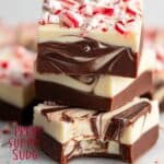 Keywords: peppermint fudge, holiday dessert, peppermint swirl, white chocolate fudge, no bake fudge, Christmas candy