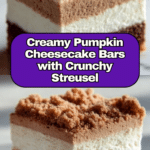 Keywords: pumpkin cheesecake bars, pumpkin dessert, fall desserts, streusel topping, graham cracker crust, pumpkin pie spice, creamy pumpkin bars
