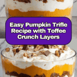 This Pumpkin Trifle is a delightful layered dessert perfect for fall gatherings. Combining spiced cake, creamy pumpkin filling, whipped topping, and crunchy toffee bits, it offers a wonderful mix of textures and festive flavors. It’s easy to assemble and sure to impress your guests.