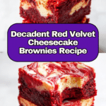 Red Velvet Cheesecake Brownies are a decadent treat combining the rich flavors of classic red velvet cake with a creamy cheesecake swirl. These brownies offer a soft, fudgy texture with a beautiful marbled appearance that’s perfect for any occasion.