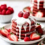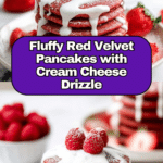Indulge in these vibrant and fluffy Red Velvet Pancakes topped with a luscious cream cheese drizzle. Perfect for a special breakfast or brunch, these pancakes combine the rich flavors of cocoa and red food coloring for a festive look, complemented by a smooth, sweet cream cheese sauce that elevates every bite.